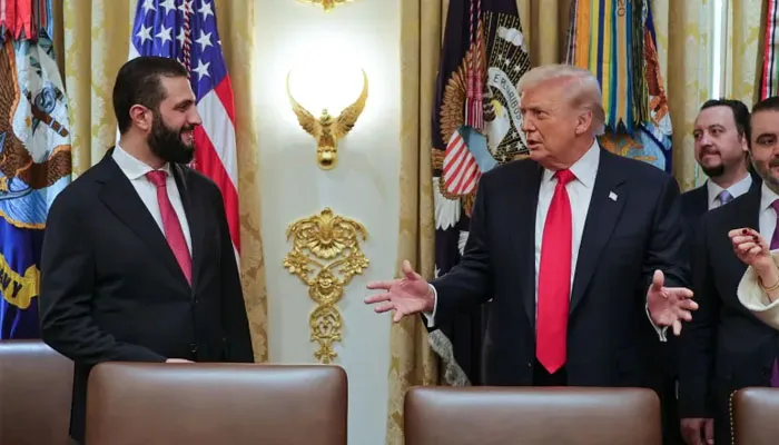 واشنگٹن: امریکی صدر ڈونلڈ ٹرمپ نے شامی صدر احمد الشرع کو وائٹ ہاؤس میں خوش آمدید کہا جہاں دونوں رہنماؤں نے دوطرفہ تعلقات، علاقائی استحکام اور مشرق وسطیٰ کے امور پر تفصیلی بات چیت کی۔ ملاقات کے فوری بعد امریکی محکمہ خزانہ نے قیصر ایکٹ کے تحت شام پر عائد اقتصادی پابندیاں عارضی طور پر ہٹا دیں، جو شام کی معاشی بحالی اور عوام کی فلاح کے لیے اہم قدم قرار دیا جا رہا ہے۔ یہ اقدام ۲۰۱۹ میں منظور ہونے والے اس قانون کے تحت پہلی بڑی رعایت ہے، جو سابق بشار الاسد حکومت پر دباؤ کا ذریعہ بنا تھا۔